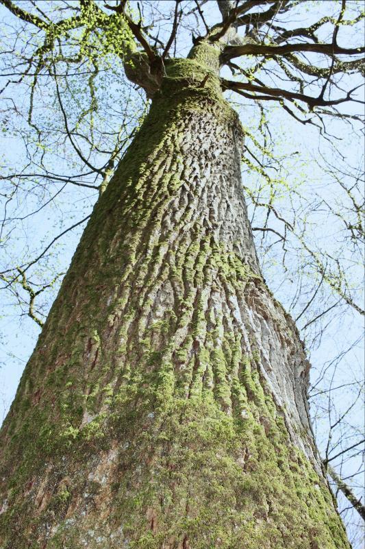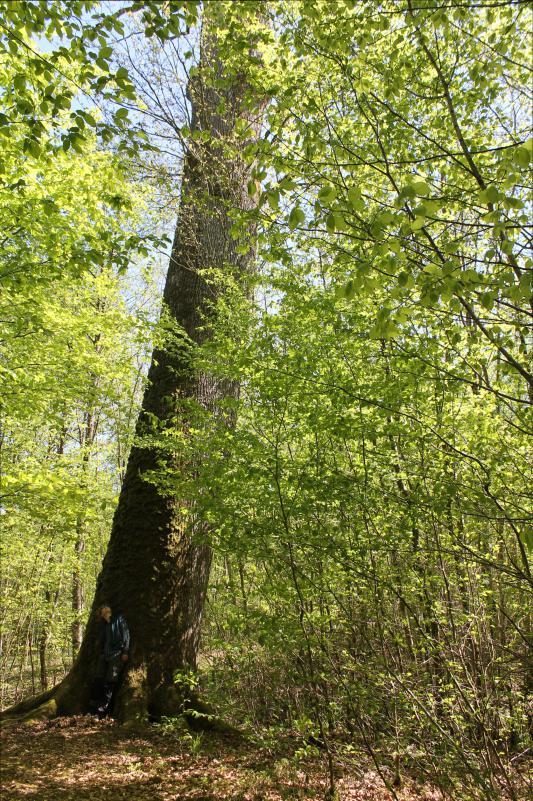 "Répertorié en 1935, ce chêne sessile Quercus petraea, haut de 34m, d'une diamètre de 180 cm, est âgé de 250 ans.