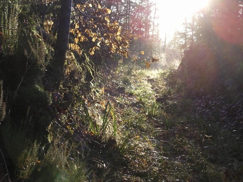 Le long du chemin, on trouve des hêtres immenses, des châtaigniers, de la callune fausse-bruyère, des fougère et des myrtilles en devenir, car le sol est acide (c'est la gaize).