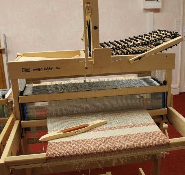 C'est le plus complexe de mes métiers, on l'appelle un métier à ratière. C'est l'ancêtre des métiers à tisser à mécanique jacquard.