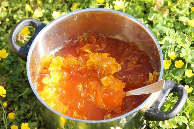 6. une fois la saponification amorcée (la trace), éteindre le feu, couvrir le savon pour ne pas qu'il se dessèche, et laisser tranquille 24 à 48 h.