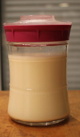 C'est un récipient spécifique que j'utilise (https://www.kefirko.fr/) mais n'importe quel pot en verre fait l'affaire.