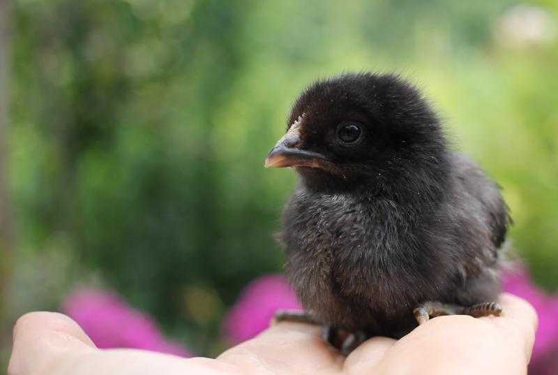 Une poulette ardennaise noire, on voit qu'elle a des plumes dorées au camail, j'en ai d'autres qui ont des plumes argentées. Je me demande bien ce que cela donnera à l'âge adulte.