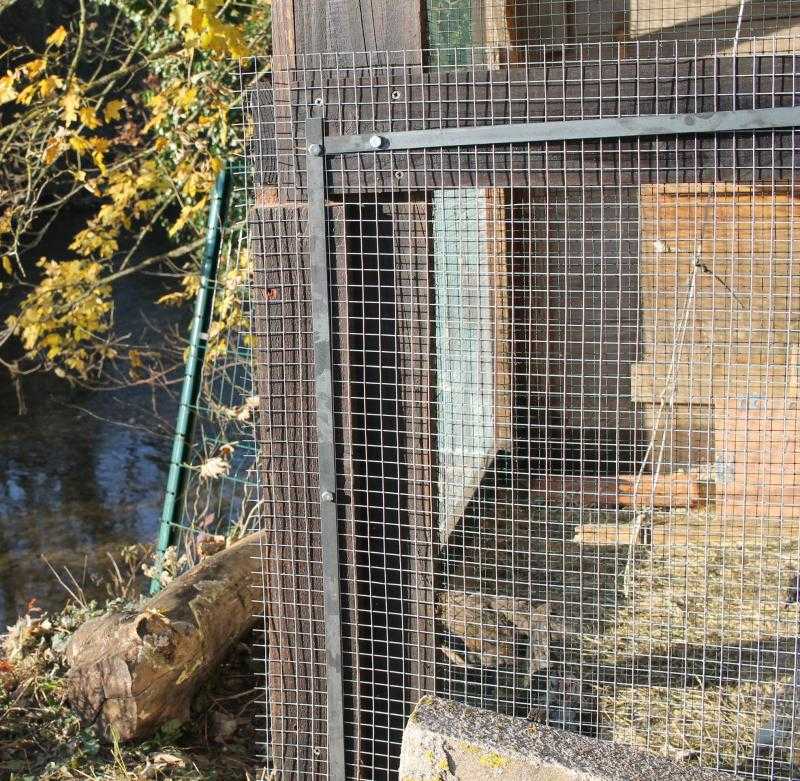 On a profité de ce mauvais coup pour améliorer cet enclos, avant de le réutiliser à nouveau. Donc changement de grillage, celui-là est très rigide, le renard devrait avoir du mal à le mordre, d'autant qu'il est très bien plaqué contre le bois grâce aux barres en fer.